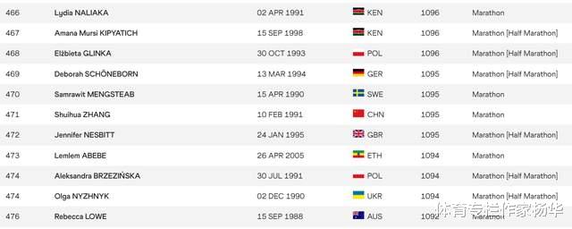 这一波动延续了近期的下滑趋势,上周她的排名尚停留在第461位,而医院处分公布时其排名曾一度处于第423位。处分之后,她连续多周没有参赛,2026年元旦东极马拉松回归,但因该赛事并非田联标牌赛事,且极寒条件成绩一般,所以排名不可避免掉落。