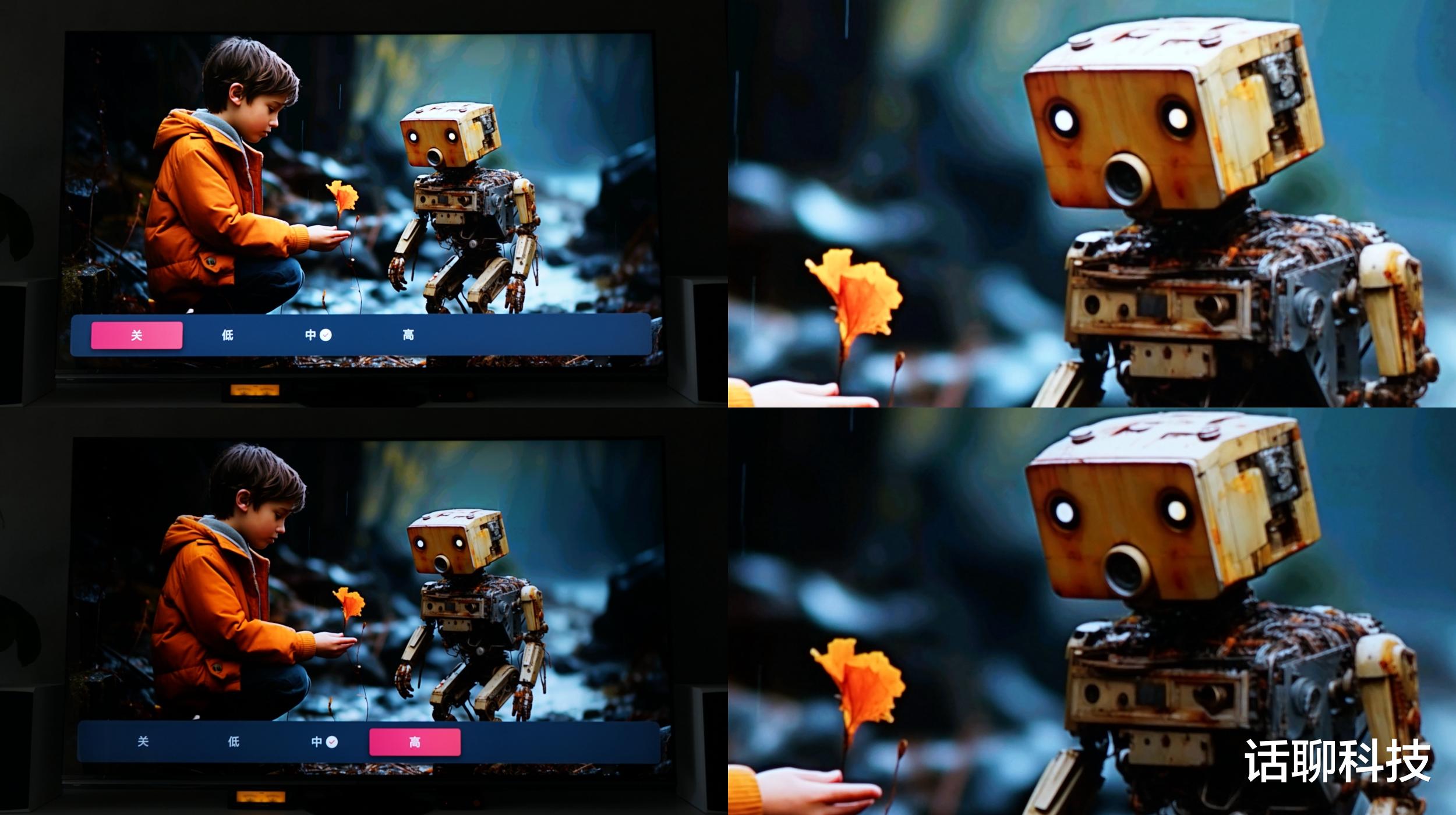 比较特别的是,如果你眼睛毒辣、对色彩风格挑剔,不喜欢AI画质,还可以个性化设置自己的专属画质,通过亮度、色温、色彩、清晰度四个维度的共16种方案,提供更个性化的选择。
