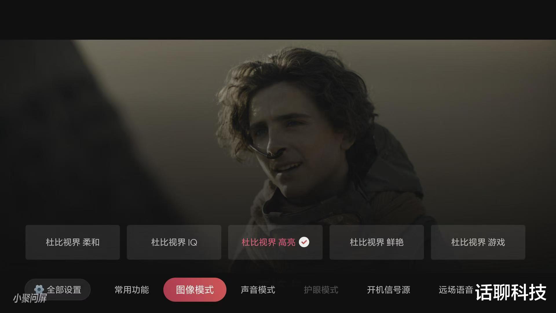 支持杜比图像模式,实际上并不是体现在画面鲜艳与否,而是更真实还原导演原片想要呈现的色调,就《沙丘2》本身就是那种深处沙尘暴的昏暗感觉,用它也能更好还原。
