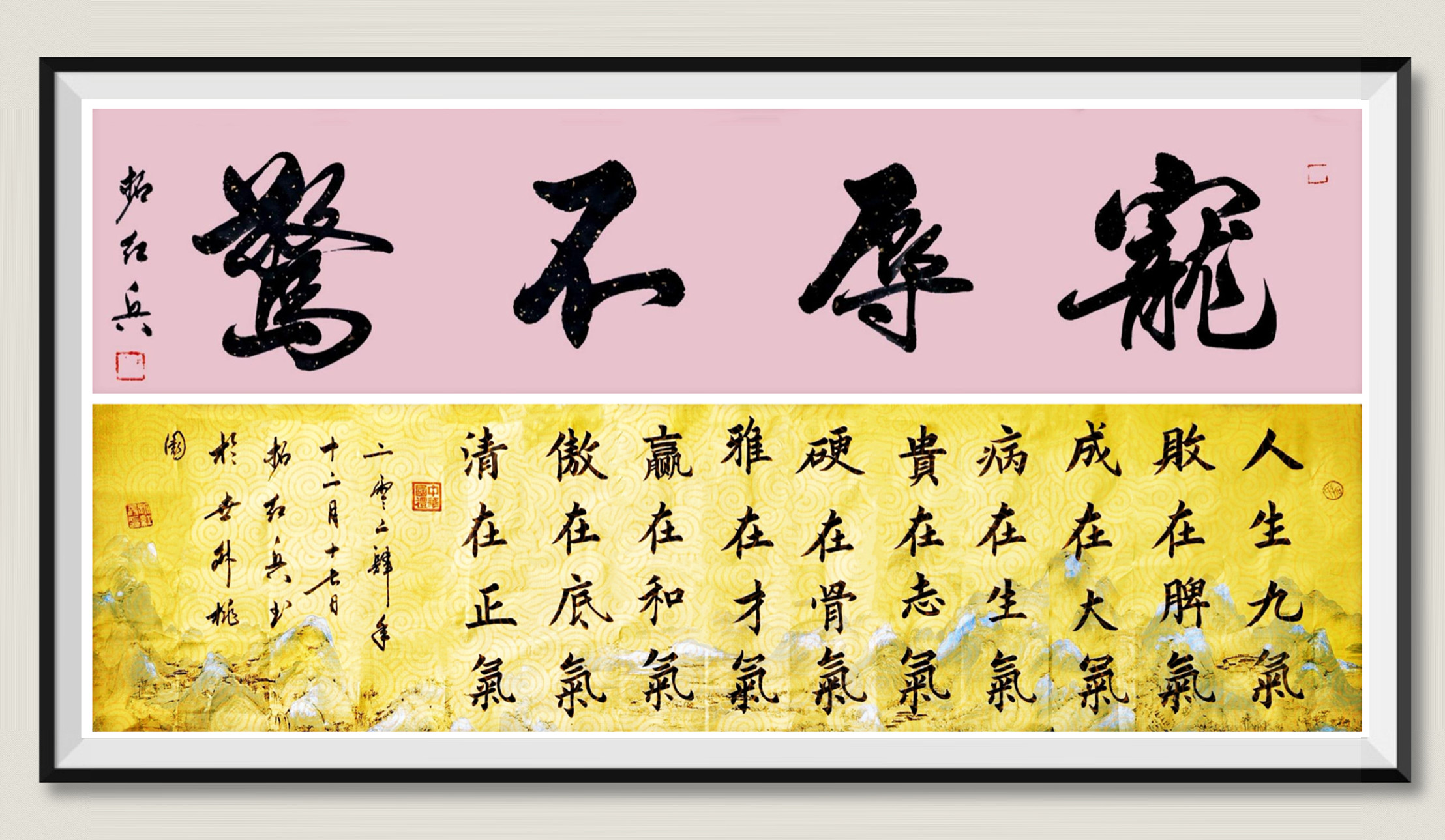 下:《人生九气 败在脾气 成在大气 病在生气 贵在志气 硬在骨气 雅在才气 赢在和气 傲在底气 清在正气》