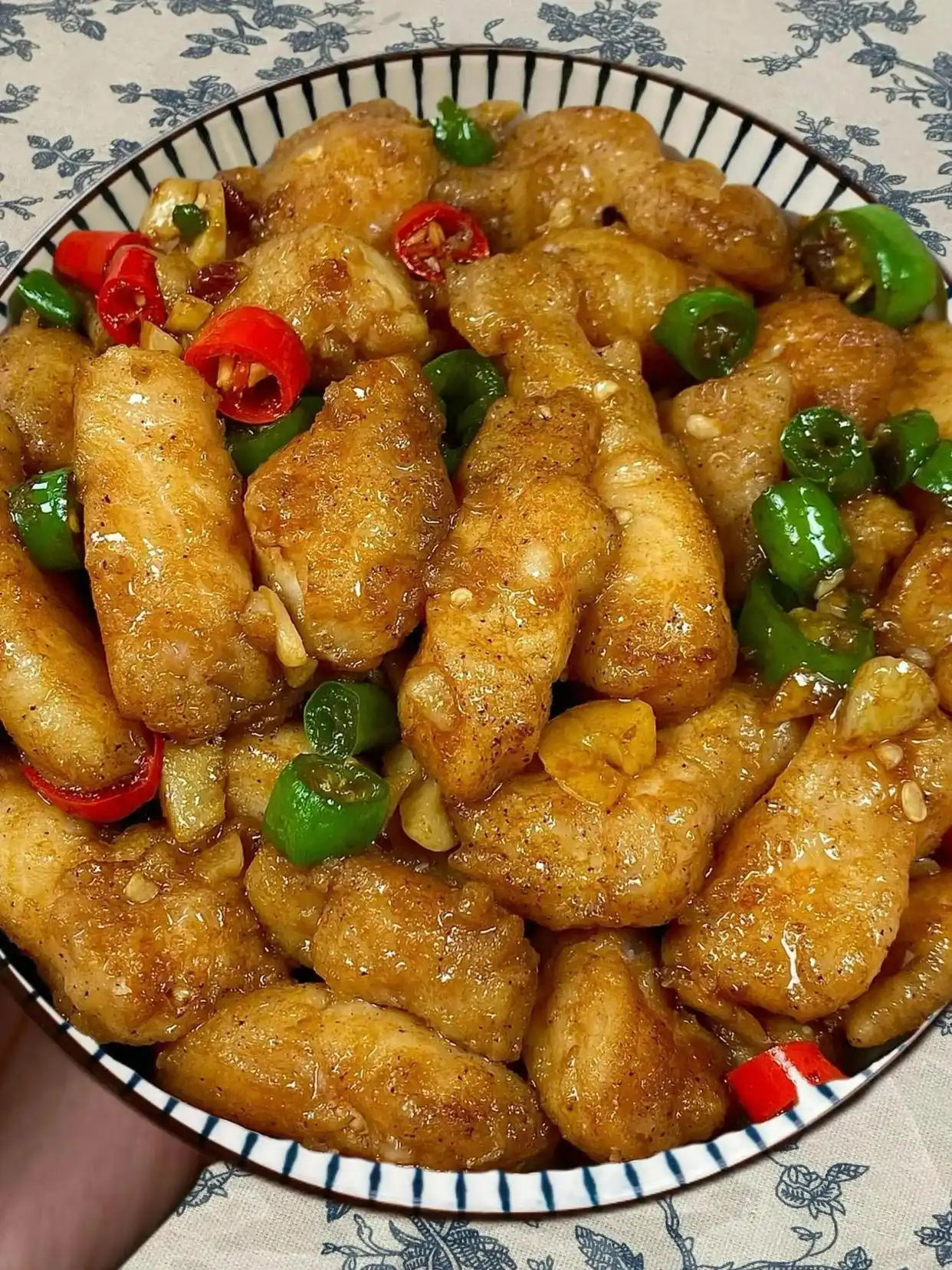 3. 爆香与翻炒:锅内留底油,放入花椒粒小火炸香后捞出。接着放入姜蒜末爆香,加入青红椒片中火翻炒至断生。