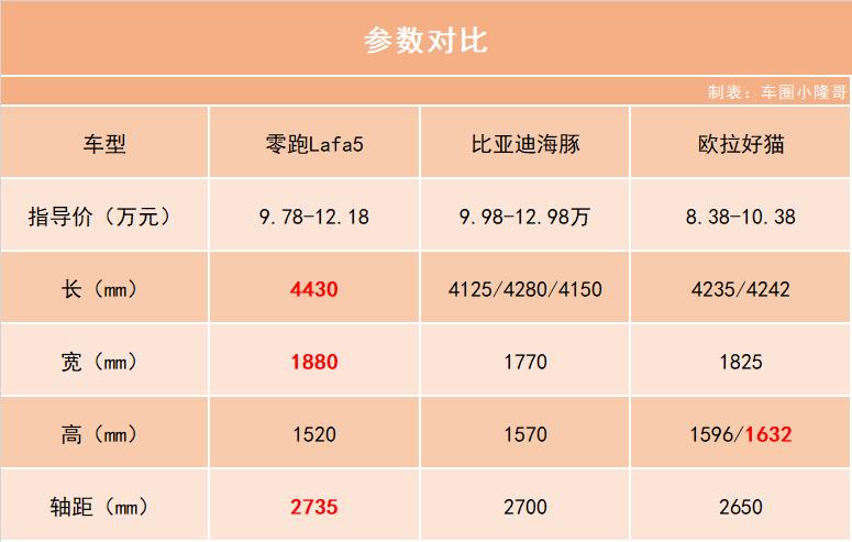 下面就根据零跑Lafa5的配置,定价,在结合一下竞品来做一个全面的对比,看一下到底怎么样。
