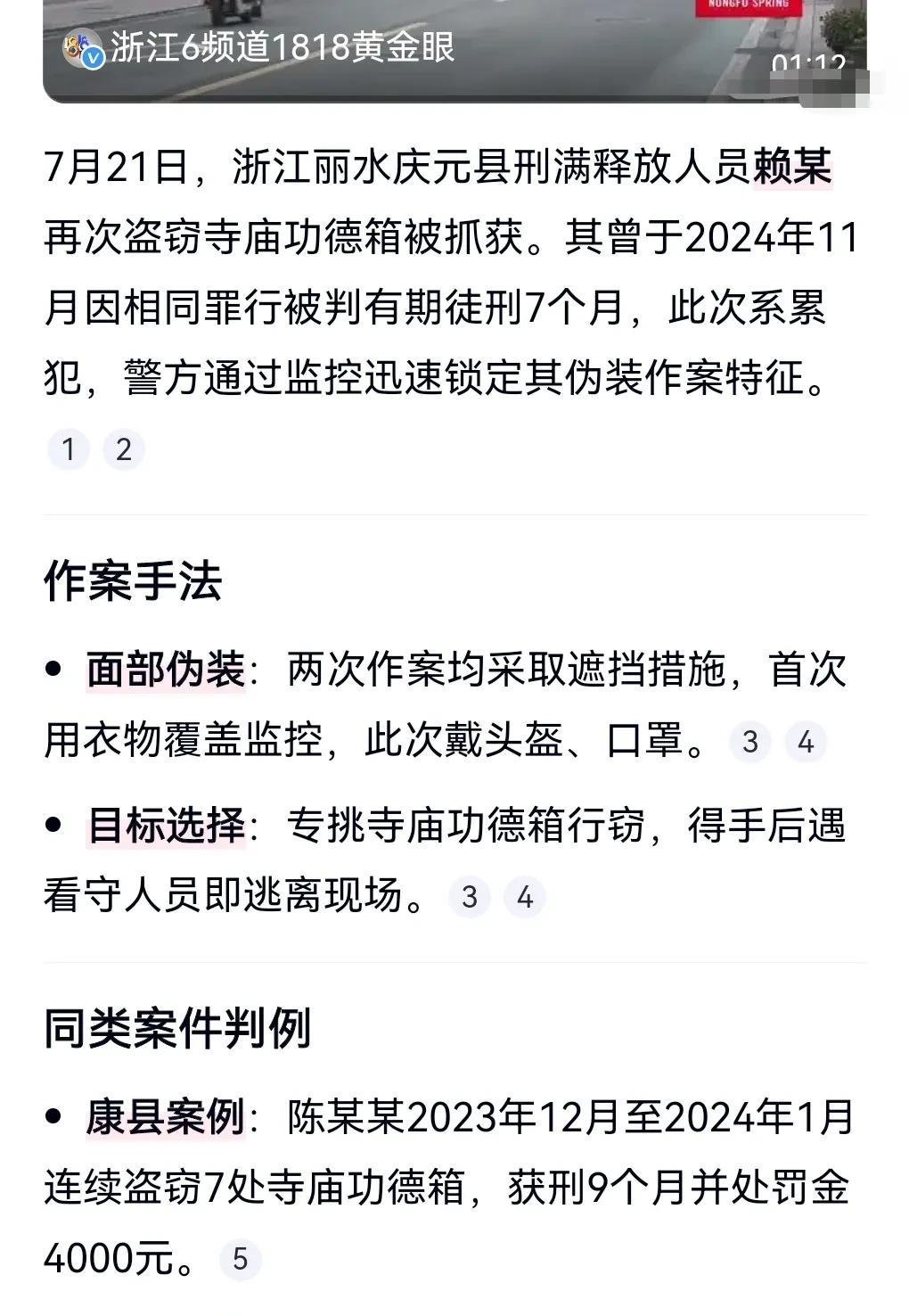这真的是屡教不改。 惯偷现象也是令人深思。 此前一男子盗功德箱被抓。 7月21日