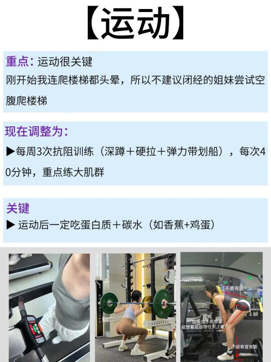 •每周3次抗阻训练(深蹲+硬拉+弹力带划船),每次40分钟,重点练大肌群
