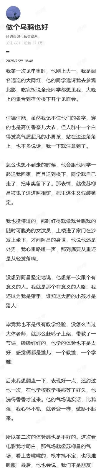 木子美真没劲,就这点儿事儿说一次就行了。 申奥导演的电影上映一次,她说一次。 这