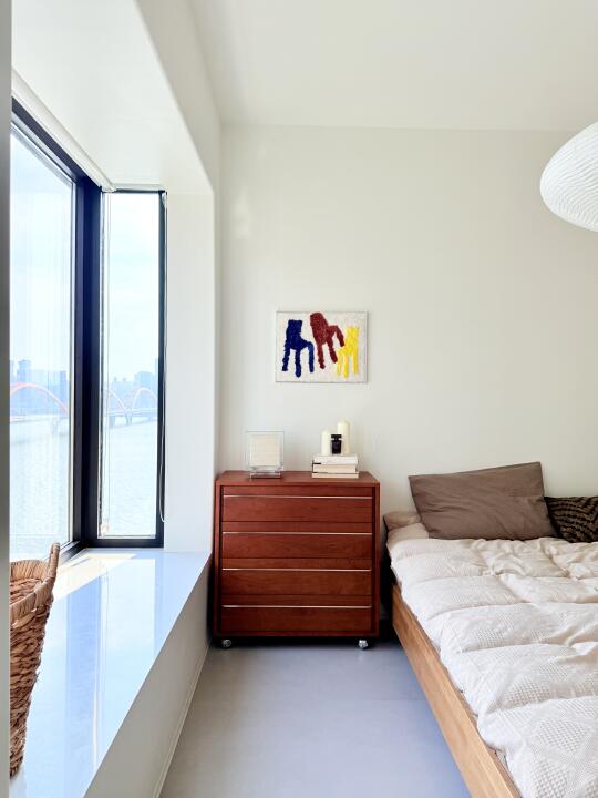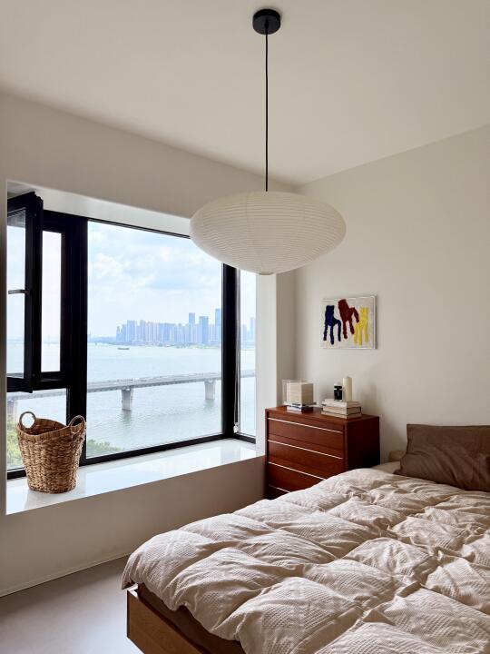 不知道为何 不喜欢堆砌 不喜欢复杂 只喜欢合理的简单 就像我的卧室没有多余的吊顶造型 直直白白的墙面 当初特意做的小圆弧窗框 和没有下挂也没有凸出来耳朵的窗台 入住两年 并没有开裂脱落的现象 果然装修越简单越不后悔[棒R]