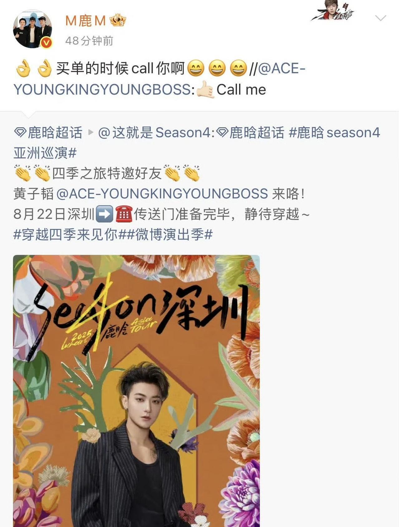 鹿晗黄子韬即将深圳合体,舞台未动,段子先行!粉丝:你俩这顿饭必须直播吃,不然我睡不着啊![打call]#深圳鹿晗演唱会#