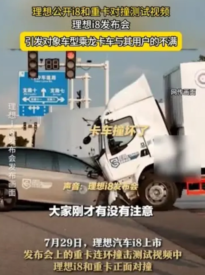 重新看了下i8对撞视频。 1.对撞后双方处于较静止状态,未出现一方往另一方推的现象,说明对撞时双方动量相等。那么小车把大车撞飞是合理情况,不需要造假:动量守恒,只要动量够大,子弹就能打飞钢板。 2.再看车速,双方车速不是对等的,i8车速大概是卡车1.5倍左右。若总速度是100,那么i8在碰撞时,速度大约是60。大车大约是40。 3.那么按i8满载3t计算,对撞时,总动量单位是3x60=180个单位.那大车的动量也理应只有那么多。 4.如果大车是8t+40的对撞车速,那么对撞时,大车动量=320个单位,不满足动量守恒定律。 5.那么可知,一、大车质量没有达到8T,可能减重到4T左右。二、大车在对撞前减速了。三、i8加重到4T以上。 6.细看视频,可以看到i8在对撞时时车内是空的,没有乘客,卡车仪表盘的时速大概是40左右。 7.对撞前一个测试跟对撞是一个连贯的测试场景。 对于专业的碰撞测试机构,能控制的参数变量可多着去了。不需要造假,不需要欺骗,只需要简单控制一下碰撞时的各个小细节,就能得到惊人的效果。甚至能达到电影级别的视觉效果。比如:对撞后彻底静止。 可以推断这条视频仅为演示厂商产品性能。当然,理想回应那么硬气,代表这些测试确实真是客观的。 就是,完全代表不了真实使用情况。