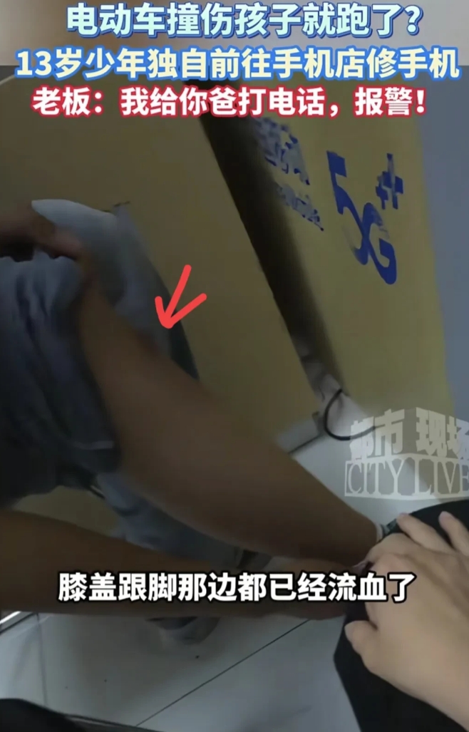 安徽宣城,13岁男孩到手机店修手机,老板见他身上多处磕伤流血,手机摔坏,一问才知男孩被一电动车撞了,那人还逃跑了,老板赶紧给男孩爸爸打电话,让他们报警,网友:这孩子老实的,忍着伤痛都不敢说。
