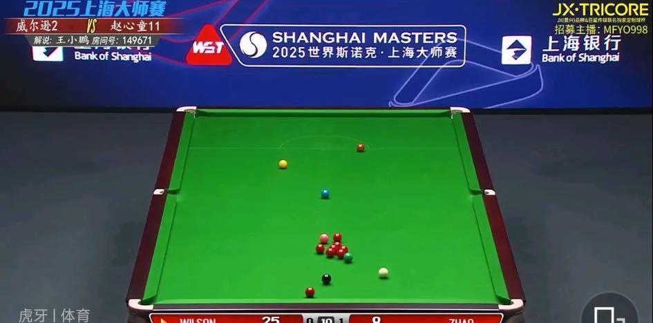 斯诺克快讯 上海斯诺克大师赛第二场半决赛正在进行由我国2025年斯诺克世锦赛冠军对阵斯诺克2024年世锦赛冠军凯伦威尔逊,第一局赵心童率先拿下,目前第二局凯伦威尔逊处于领先25比8,囧哥继续,半决赛采取19局10胜,分两阶段,第一阶段打九局,晚上第二阶段最多打10局,第一场半决赛阿里卡特逆转塞尔比晋级决赛,替补参赛的卡特连续三场逆转马克威廉姆斯,肖国栋,塞尔比,状态火爆#斯诺克大师赛#