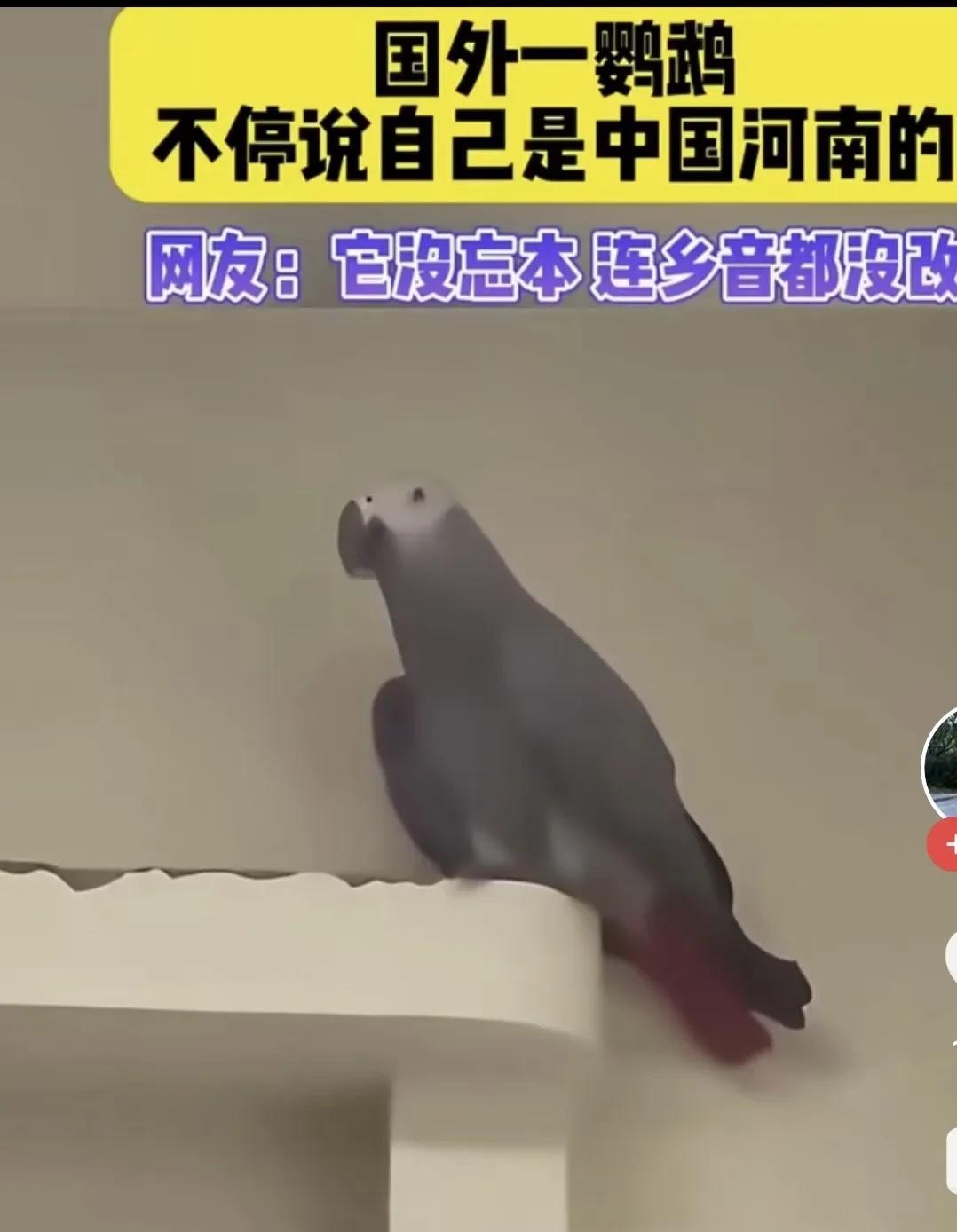 这是一只爱国鹦鹉!中国鹦鹉到了外国,也知道她是中国河南的,就这份情怀,她是一只好鸟。 网友:这鹦鹉比某些人强万倍!