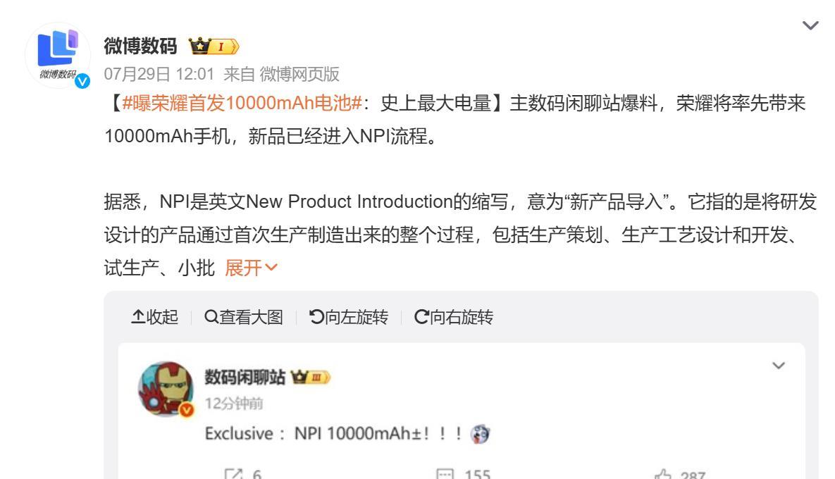 荣耀手机,你真的该收手了,没人管管吗 之前体验的荣耀Power,续航真的是由它不由我,重度使用一天电量也没用完。而现在又有最新的爆料了,据说下一代的荣耀Power2会首发10000mAh的电池,这是打算淘汰移动充电宝的节奏 可以说耀子成功推动了安卓阵营电池技术竞争的进程,而荣耀Power、荣耀X70在同级别机型中的续航表现也找不到对手,照这么发展下去,真的是不打算给友商留活路了