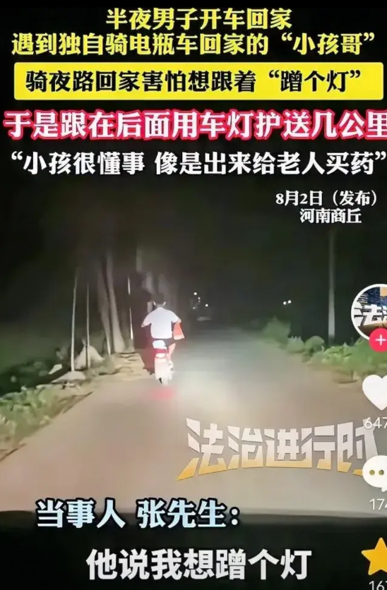 男子未必懂得“助人为乐”的道理,或许只是看到孩子一个人走夜路,便想起了家里的孩子,就像雨天为陌生人撑伞的路人,没有过多的考虑,只是不忍心让对方淋湿。