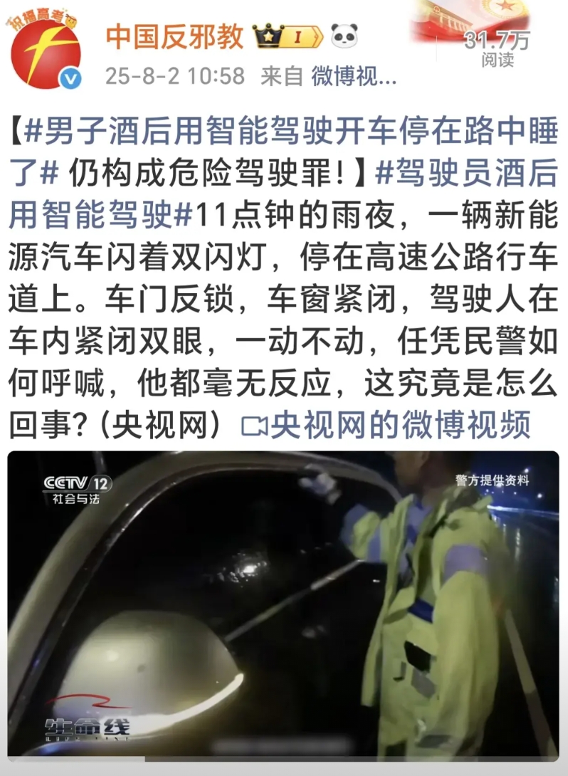 男子酒驾时开启智能辅助驾驶,还以为不会有事,结果被警察叔叔查获,面临罚款加坐牢的处罚。据央视网报道,视频中的男子是问界车主。他这般信任智驾,很可能与厂商过度宣传有一定关系。这种不顾生命安全的行为,既害人又害己。希望汽车厂商在宣传辅助驾驶功能时,要依据实际情况,而不要瞎吹!
