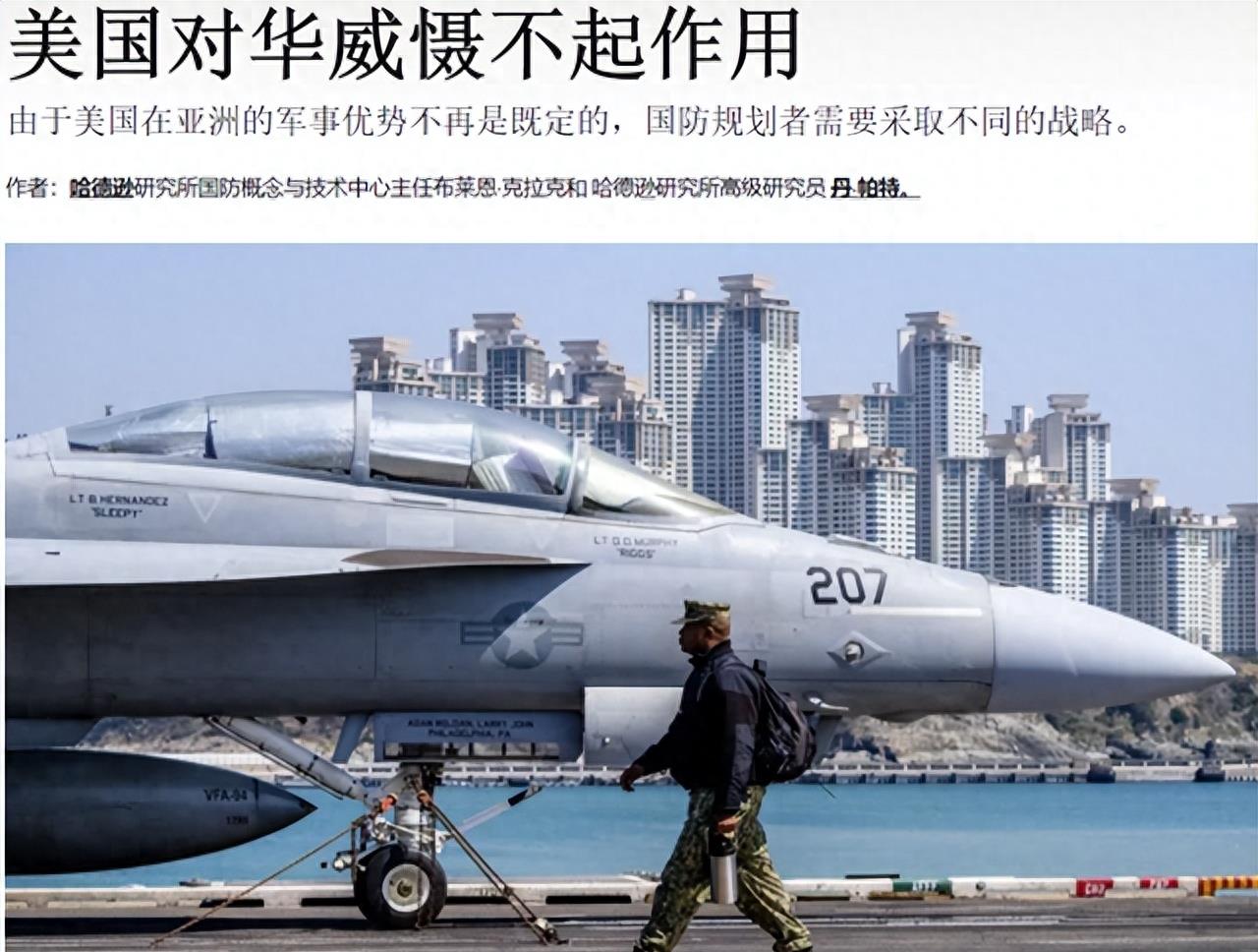 近期,美国对华政策呈现出一些值得关注的变化。哈德逊研究所,一家著名的智库,公开表示,现有的对华威慑策略已经不再有效。原因在于美国在亚太地区的军事优势不再存在,美国军队已经逐渐滞后,这使得美国无法再依赖军事手段来与中国竞争,也导致了美国对华威慑能力的下降。