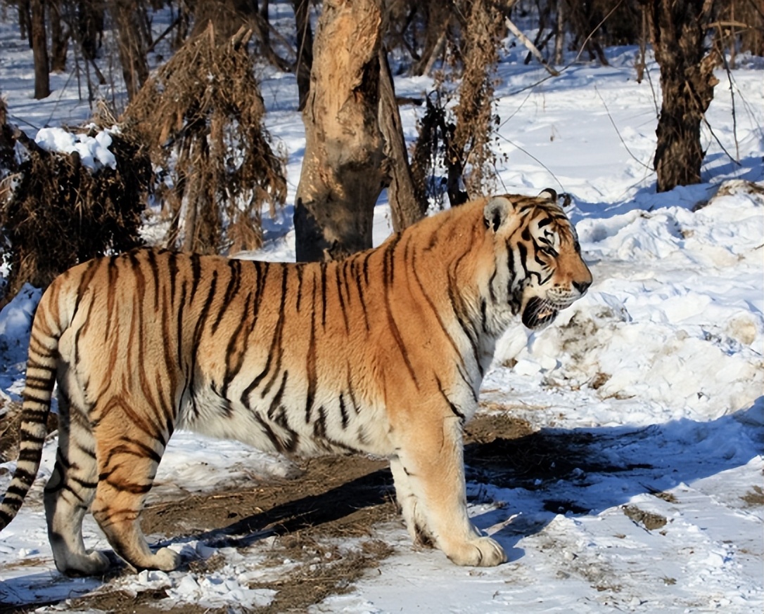 夜幕降临之后,东北虎离开张旺家返回了丛林中。