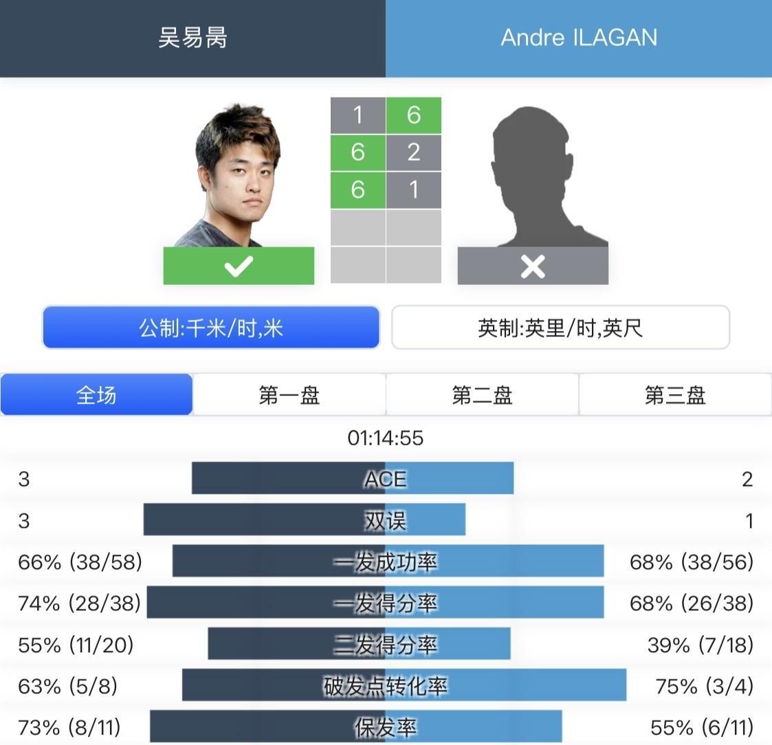 吴易昺逆转战胜伊拉甘晋级CH75芝加哥挑战赛第二轮!即时排名上升至第181位! 吴易昺近来状态出色!在华盛顿公开赛打进16强后世界排名也重回前200!本届赛事作为4号种子选手出战的吴易昺首轮对阵本土选手伊拉甘。 首盘比赛吴易昺在先胜一局后被对手连赢六局获胜;第二盘比赛调整好状态的吴易昺两次破掉对手的发球局,最终以6:2扳回一盘;决胜盘吴易昺手感火热,仅用时24分钟便以6:1轻松获胜! 第二轮吴易昺将对阵日本选手中川直树。希望吴易昺能够延续良好的状态,争取击败对手晋级八强!