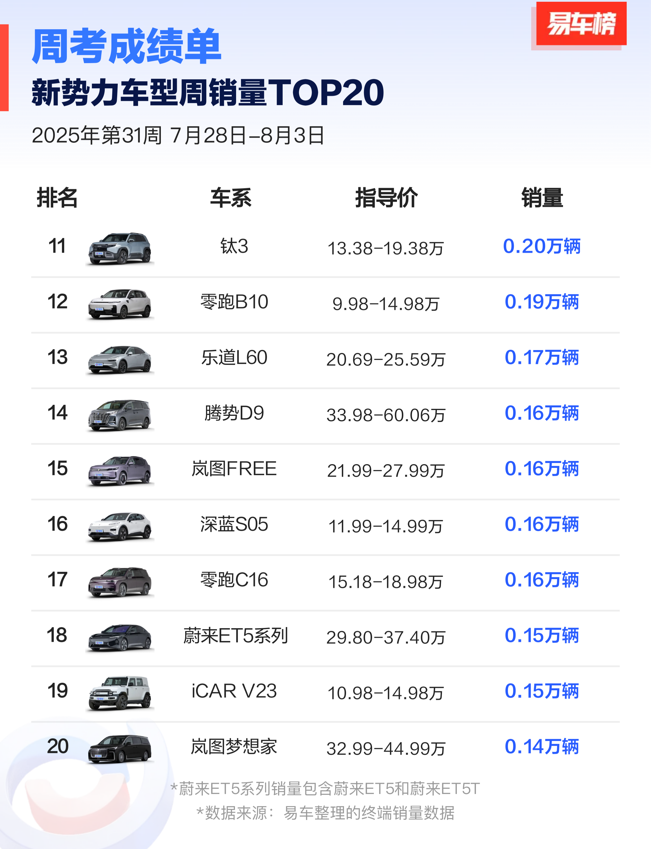 上周新势力品牌最畅销的三款车型——问界M8、小米SU7和小鹏MONA M03。
