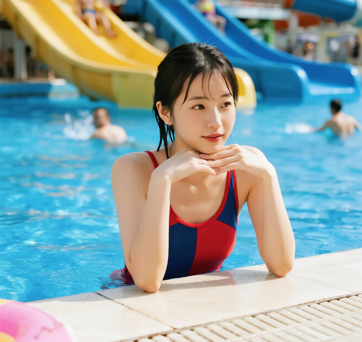 「造浪池の海后:头发甩出的弧度是一道夏日彩虹」