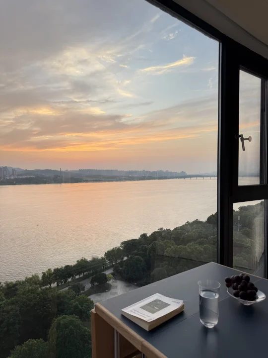 每天都有不同的期待 今天的夕阳是这样的 明天又是什么样的呢?[扯脸H] 天气好的时候还能去江里划个桨🏄