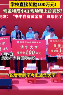 近日,该校举办高考颁奖典礼,现场为被清华大学录取的罗同学发放100万元现金奖学金,此事迅速引发全网关注。
