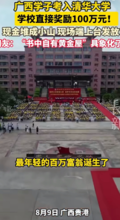 看完这事儿,周少不得不说100万现金奖励考上清华的学生,这波操作确实够震撼。