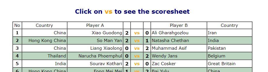 白雨露2-1击败中国香港选手冯梅梅,开门红! 梁小龙0-2不敌巴基斯坦选手Muh