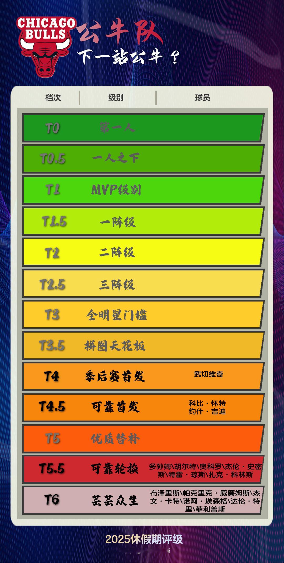 公牛的配置,在东部也是非常平庸,基本被动锁定了来年的高顺位选秀——除非年轻人获得光速进步。对公牛来说,没有获得确定性的顶级天赋前,烂不是坏事,妥善处理好手中要签约和要到期的合同,等待明年手气炸裂,这就是最好的安排。