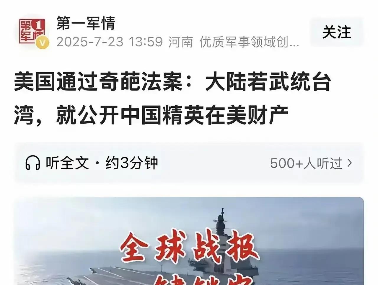 美国这一招太损了! 建议不只是公开中国精英在美的财产, 还有在澳大利亚,新西兰,英国,新加坡、等等的,美国如果真的想,很轻松就能办到,毕竟这些国家都抵不住美国的压迫,美国还以为这一出法案能压制中国,实则是在帮中国的大忙,巴不得老美把这件事干了,看这些人不得立马跑回来主动交代,还省事了!