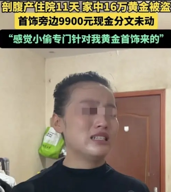 河南驻马店,女子剖腹产,住院11天,家里167克黄金首饰被盗,大约16万左右,而