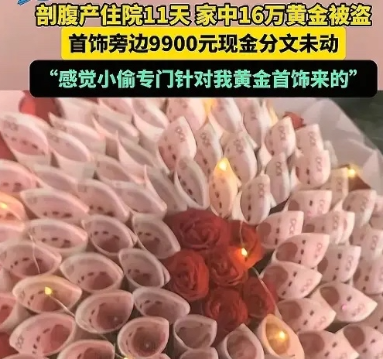 河南驻马店,女子剖腹产,住院11天,家里167克黄金首饰被盗,大约16万左右,而旁边一束9900现金花束却一分没动,她看监控11天期间有25个人上楼,女子报了警,可她一想起这事就愁,一个多月瘦了37斤,她崩溃落泪:要是熟人偷走,我心里会更难受。如果找到,愿意捐50%给社会。网友:要是小偷,现金花束也会被偷走,明显是熟人。 “要是熟人干的,我这心里得有多膈应啊!” 潘女士(化名)一提起家里那事儿,声音里全是委屈和愤怒。 据都市报道8月7日发布,潘女士怀孕在医院生产,可有人盯上了她的金首饰。 潘女士本是满心欢喜地迎接新生命,却因这场意外,陷入了无尽的烦恼。住院前,她把黄金首饰妥善收在家中,想着就几天时间,应该不会出啥问题。 可等她出院回家,准备找首饰时,却发现装首饰的盒子空了。那一瞬间,她愤怒和难过交织在一起,她赶紧查看家里其他地方,结果除了黄金首饰,啥都没丢,连旁边显眼的 9900 元现金花束,小偷都没碰。潘女士越想越不对劲,赶紧调了家里的监控。 这不看不知道,一看吓一跳,住院 11 天期间,居然有 25 个人上过楼。这些人里,大部分都是自己的亲戚朋友。 潘女士也没法确定。她心里又急又怕,一方面盼着能快点找到黄金首饰,另一方面,又忍不住猜测,会不会是身边熟人干的?毕竟现金没动,专挑黄金,太像是了解家里情况的人做的。 从那之后,潘女士的生活全乱套了。一闭上眼,就开始琢磨这事儿,整宿整宿地睡不着。才出院一个多月,人居然瘦了 37 斤。 以前圆润的脸,现在凹下去一大块,眼神里也没了往日的光彩。她每天心里像压了块大石头,又憋屈又难受,“要是真的是熟人偷走的,我得有多难受啊,这以后还咋相处?” 这话,潘女士不止一次在心里念叨。 没办法,潘女士报了警。警察来了家里,仔细勘查现场,询问情况,可线索有限,一时半会儿也没法破案。潘女士只能天天盼着,盼着警察那边能有好消息。 她甚至公开说,如果找到黄金首饰,愿意拿出 50% 捐给社会。这既是她心里的一种期许,盼着能有好心人帮忙,也是她想为这事找个出口,要是真能找回,也算让这些黄金发挥点更有意义的价值 。 这事传到网上,网友们也炸开了锅。有人说:“小偷肯定是熟人!现金不拿,专偷黄金,太明显了,肯定是知道黄金值钱好变现,又清楚家里情况的人干的。” 还有人说:“这潘女士太可怜了,刚生完孩子,碰上这糟心事,身心都得受多大罪啊,希望警察赶紧破案,还她一个公道。” 也有网友提醒:“以后可得长记性,贵重东西要么别放家里,要么找更保险的地方存着,熟人也得多个心眼,这社会,啥人都有。” 这事儿,也给大家提了个醒。不管啥时候,家里贵重物品都得妥善保管,别给小偷可乘之机。还有就是,人心隔肚皮,哪怕是熟人,有些事儿也得谨慎。 对此你怎么看?欢迎大家在评论区留言讨论。