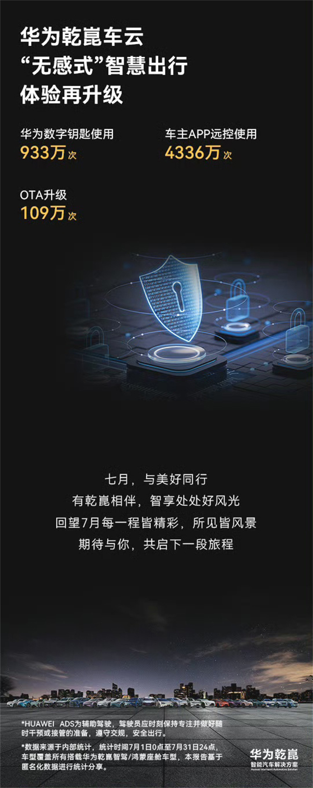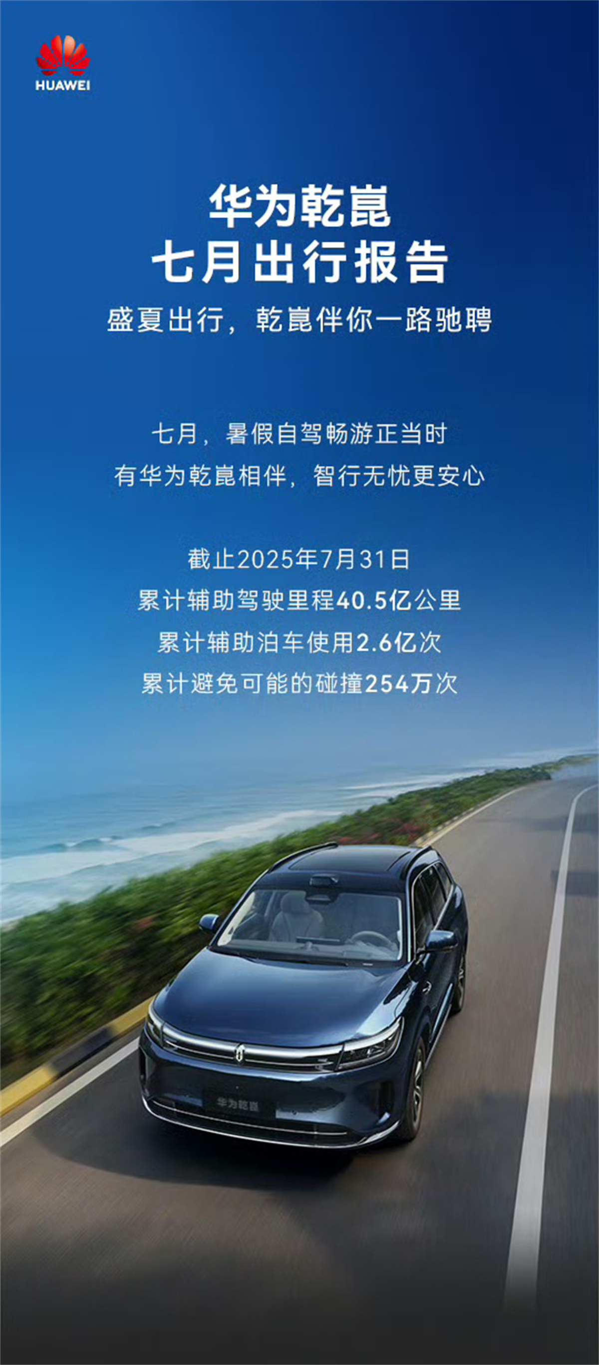华为智能汽车解决方案BU CEO靳玉志微博正式公布,华为乾崑智驾搭载的汽车数量,正式突破100万大关。 这一傲人成绩的背后,离不开用户对华为乾崑智驾的支持和信赖。 根据华为乾崑2025年7月出行报告显示,截至2025年7月底,华为乾崑辅助驾驶总里程达到40.5亿公里,辅助泊车累计使用了2.6亿次。2025年7月份,人均辅助驾驶里程达到699公里,是业内平均水平的2-4倍。一款产品好不好用,应该让用户说了算,数据不会说谎。功能好用,用户才会爱用!