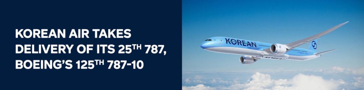 波音累计交付125架787-10!同时也是大韩航空第25架787客机! 波音7月