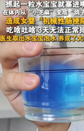 ”太可怕了!深圳10个月大的女婴,因手速快抓了粒水宝宝塞进嘴里,水宝宝在女婴体内“疯狂生长”,从“小芝麻”一路膨胀成“鸽子蛋”,直接造成机械性肠梗阻。女婴吃啥吐啥,3天没法正常排便,遭了大罪 。医生取出后把水宝宝泡水,更是长成“大鹅蛋”大小,想想都让人后怕!