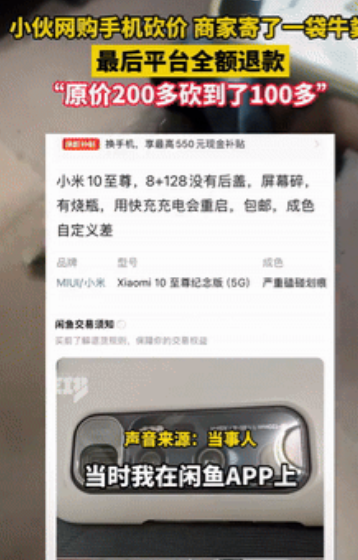 缺了大德了!广西,一小伙网购手机砍价,原价200多砍到了100多,几天后快递就送了过来,然而,当他拆开包裹后却傻眼了,里面装的竟然是一包牛粪!网友:这也太侮辱人了! 据江北融媒8月12日的报道,小伙在浏览某二手平台时,看到有人在卖手机,因为瑕疵有点多,所以价格就只有2百多。 可他还是觉得有些贵,便和卖家商量着能不能再便宜些,就这样,在经过一番“唇枪舌战”后,最终以1百多的价格成交。 在等了几天后,快递终于是送了过来,然而,就当小伙满心欢喜的去拆包装时,直接都傻眼了。 只见包裹里压根就没手机,有的就只有一包牛粪,在看到这一幕后,小伙也被气的不轻,这不就是妥妥的侮辱人嘛。 要说对砍过的价格不满意,作为卖家完全可以拒绝的,既然同意了,那为何还要搞这种东西来恶心了。 事后,小伙就找到平台反映情况,最终的结果就是全额退款,至于那包的牛粪的结局,就不得而知了。 所以说网购还是需要谨慎些,尤其是在二手平台买东西,收到货时最好边拆包裹边录视频,留作一个证据。 要真有什么问题的话,也好向平台反映,维护好自己的权益,要是平台也不管的话,就可以去投诉了,毕竟谁的钱都不是大风刮来的,该维权就维权,别默默的吃下这个亏。 那么对于这件事情,您有什么想说的呢?
