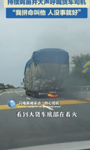尽管他们的车在猛追,前面的货车却依然开得四平八稳,仿佛车底的火光和浓烟都只是幻觉。接下来的四十多秒,夫妻俩心急如焚。他们拼命按喇叭,丈夫更是摇下车窗,用尽力气朝货车司机嘶吼。