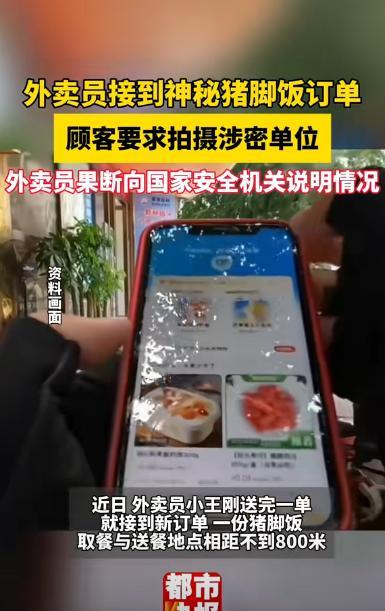 外卖小哥立大功!一外卖小哥接到一份送餐订单,不料,下一秒他竟给国家安全部打电话,只因顾客要求到送餐地点后,必须拍照才能确认送达,可熟悉周围环境的小哥,一眼就看出收餐地址为涉密单位,怀疑对方是间谍,而结局令人意外! 小王出生于一个普通家庭,小时候有一次父母不在家,交代给小王让他帮忙看着家里面的水池要是续满水的话就把水龙头给关了,不料小王因为自己在看动画片太入迷了给忘了。 父母回家看见这一地的水后,很是生气于是就狠狠地教育了他,从那以后小王不管做什么事情都格外的认真与细心。 这一良好的习惯导致他工作送外卖的时候经常收货好评,甚至还被评为了优秀员工,然而就在近日的一单外卖让他觉得不对劲。 就在小王刚送完上一单外卖的时候,他就立马又接到了一单距离他很近的订单,这是他还在高兴不用跑了直接在这等一下就好了,等他那到饭的时候,他一看距离收货地址只有800米。 到了之后,他发现订单的地址是一个私密单位,随后他就打电话想让顾客自己下来拿,因为他知道在这种单位是不能拍照的,不料电话那头却给他说让他多拍几张照片。 小王赶紧解释道这个位置不能拍照,但对方又说到,愿意给他钱来还几张照片,听了之后小王觉得不对劲,怀疑这个顾客是间谍,挂了电话之后他就立刻拨打了举报电话。 好在小王的警惕心比较强,不然一般人遇见这种事情就给拍照了,那样的话后果简直不堪设想。 对此,你还有什么看法呢?