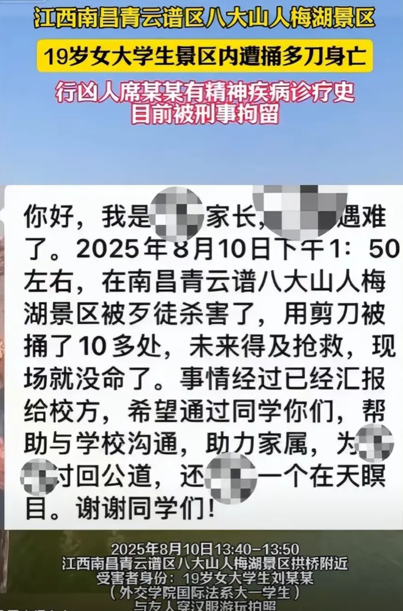江西那位在景区被杀害的女孩才19岁,她在去年考上外交学院,外交学院是外交部唯一直属院校,那是培养外交官的地方,去年外交学院在江西全省才招了她一个学子,可见她是一位学习多么刻苦的女孩子。