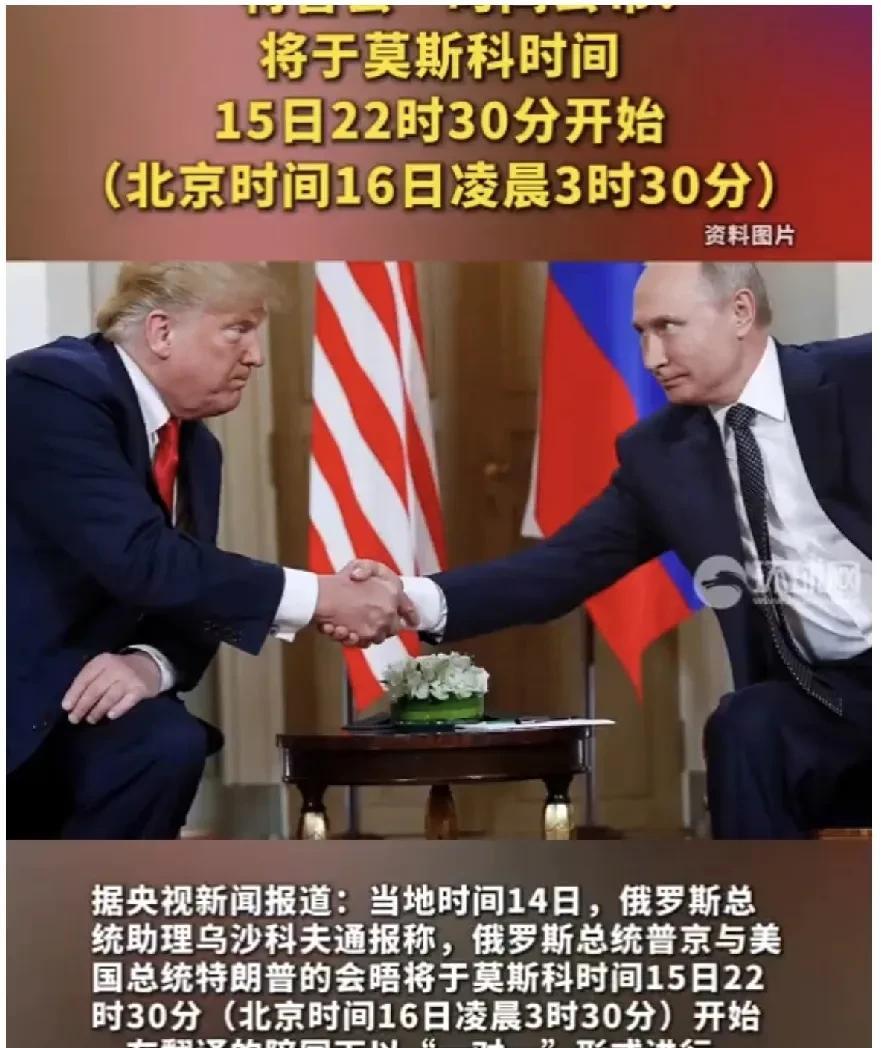 特朗普与普京会晤将于北京时间16日凌晨3点30开始。 注意!是双边会晤,一对一形式。 除各自翻译人员外,没有第三方参与。 泽连斯基的参与要求无效。 欧盟以及多个主要国家的反对无效。