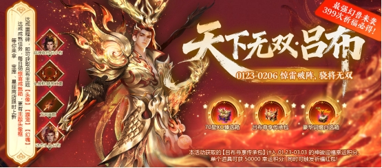 年兽可以说是《魔域手游》的一大传统,而在今年,官方以“柔光破敌,战神归位”为主题,推出了两只SS级主宠——天下无双·吕布