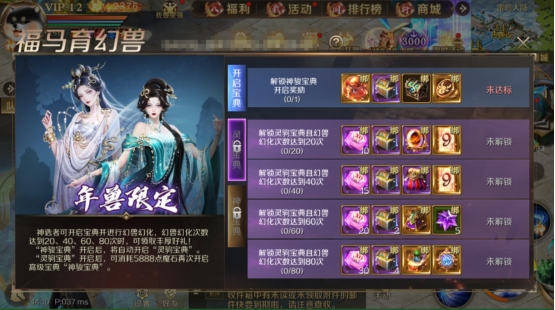 对于追求荣耀与排名的神选者,两场大型榜单活动不容错过。首先是马年兽升星赛——神骏迎福,活动时间为1月23日至3月3日。在此期间,幻化任意幻兽时使用“福骏幸运草”,或通过祈福活动获取指定道具,均可获得福骏积分。该榜单分为全球榜和祥瑞榜,全球榜Top10不仅能获得专属定制称号“策马东风”,还能瓜分巨额京东卡分红。奖池机制十分诱人,每当全球榜在祈福活动中达成一定要求,奖池就会注入1084元京东卡,最高累计至88888元,第1名最高可独享超30000元京东卡奖励。即便未能进入前列,只要积分达到30000且拥有吕布和貂蝉,也有机会被抽取获得150元京东卡。