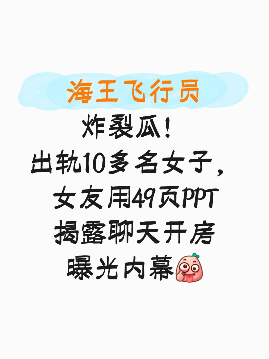 某飞行员冲上热搜?! 姐妹们快吃瓜! 49页PPT爆锤,出轨十二名女生