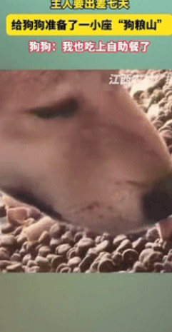 “笑岔气了!”一狗主人要出差7天,怕狗狗饿到肚子,提前给狗狗堆了一小座“狗粮山”