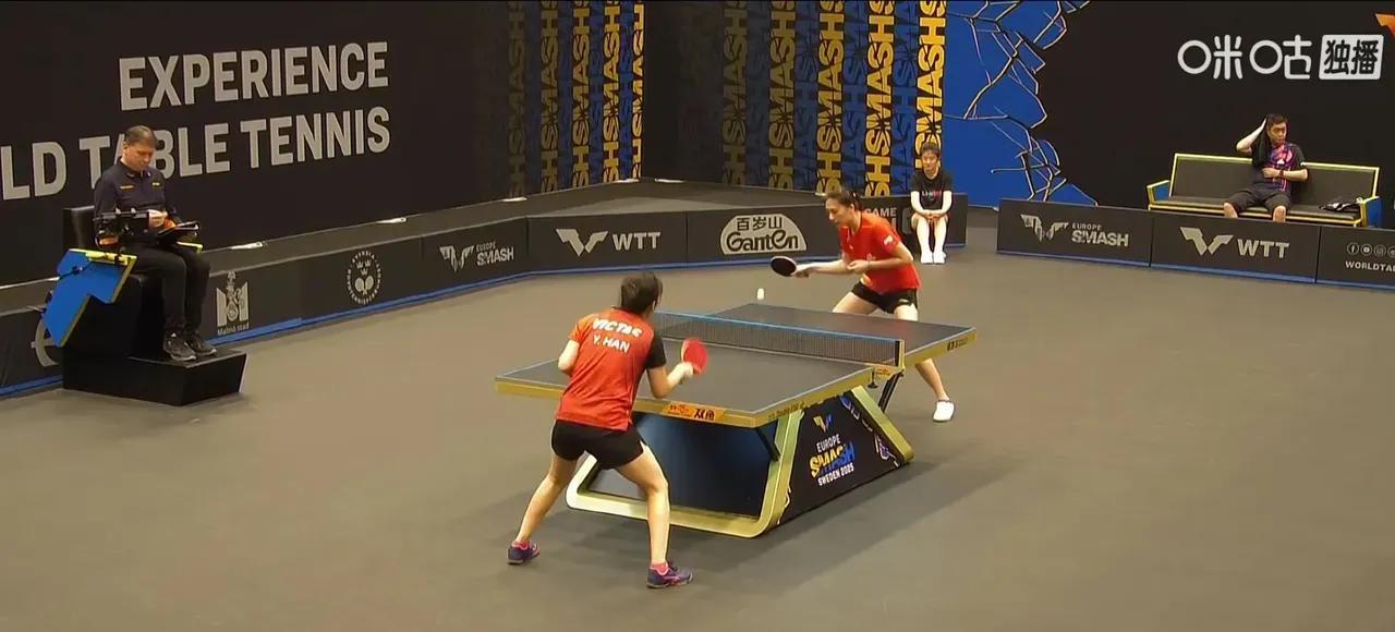 8月18日晚上WTT瑞典大满贯女单32强决赛。 陈熠3一0韩莹,11一4,11一