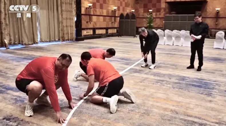 为了挤出更多时间,篮协主席郭振明、男篮主教练郭士强和教练团队,临时加班,在住地酒店会议室,现场用胶带画出半个篮球场……这一个细节就能看出,这支中国男篮上下的团结与决心。 男篮亚洲半决赛,澳大利亚44分大胜伊朗轻松晋级,中国队拼搏战胜强敌新西兰,两支决赛队伍的体能消耗大相不同。 而且由于男篮亚洲杯半决赛和决赛赛程背靠背,中间没有休息天,加之入驻酒店离训练场馆通勤往返要1个多小时路程,并且还只有50分钟的训练时间,所以教练组临时加班,篮协主席、男篮主教练带领团队任劳任怨,做好后勤保障,现场亲自动手“画”出半个篮球场来进行战术演练……目的只为了挤出更多时间,让球员有更好的休息,和有更好训练。 在决赛中,中国男篮团结一心,斗志昂扬,把澳大利亚逼到悬崖边缘,最后一秒才分出胜负,以1分之差夺得2025男篮亚洲杯亚军。