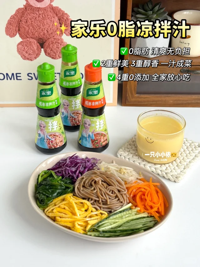🥗吃大拌菜,除了食材要新鲜多样,料汁更是灵魂所在!不想用各种瓶瓶罐罐费力调料汁的姐妹,可以试试我用的家乐0脂鲜爽凉拌汁,分分钟实现拌菜自由!✨