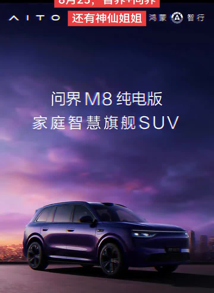 8月25,智界+问界,还有神仙姐姐。 8月25日,成都见。问界M8纯电版家庭智慧旗舰SUV智界及问界秋季新品发布会,2025年8月25日14:30。