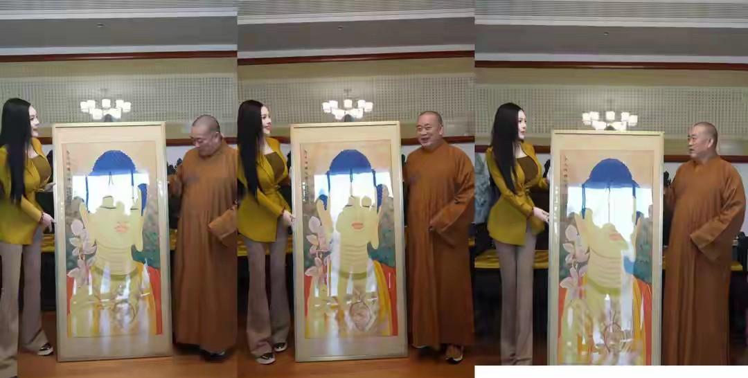 这位美女太懂得流量了,[发怒][发怒] 前不久,看到送画给释永信, 把大师逗得乐