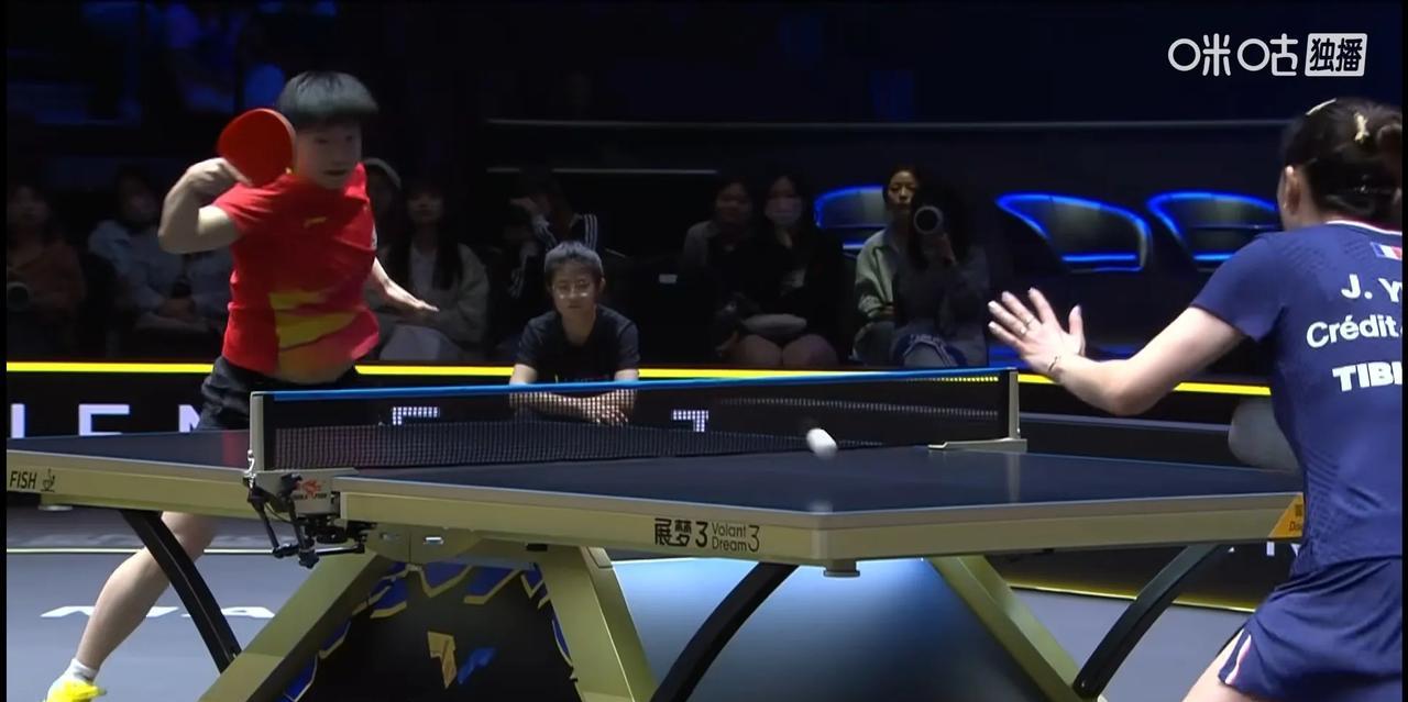 莎莎对阵袁嘉楠,第三局,莎莎11:5拿下。 目前大比分2:1,莎莎领先。 可能第