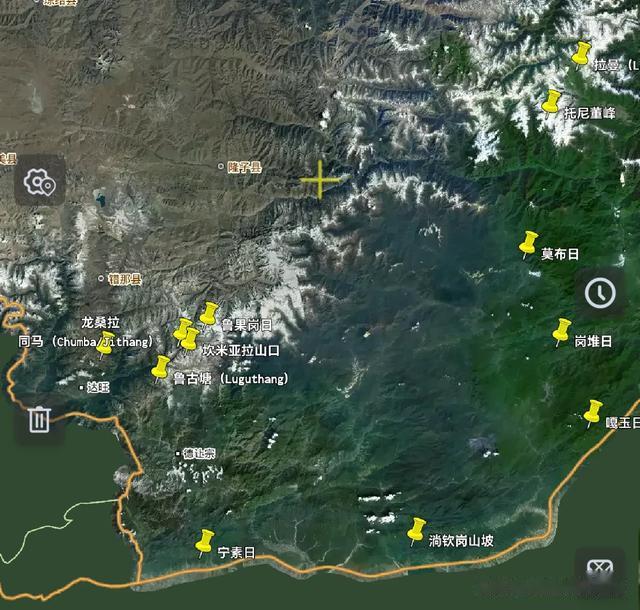 4、鲁果岗日:山峰,有些地图错误将其标为康格多山,实际上康格多山在更东边。
